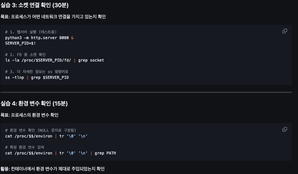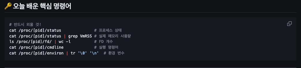 /proc 파일시스템을 통해 실행 중인 프로세스의 상태를 분석하고, FD 누수나 메모리 문제를 진단할 수 있어야 함.